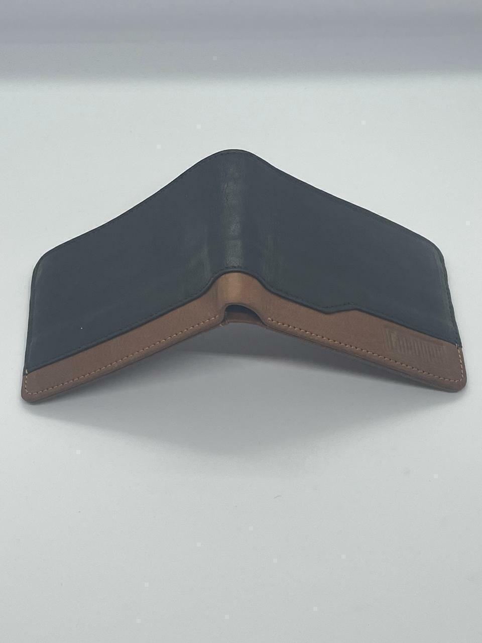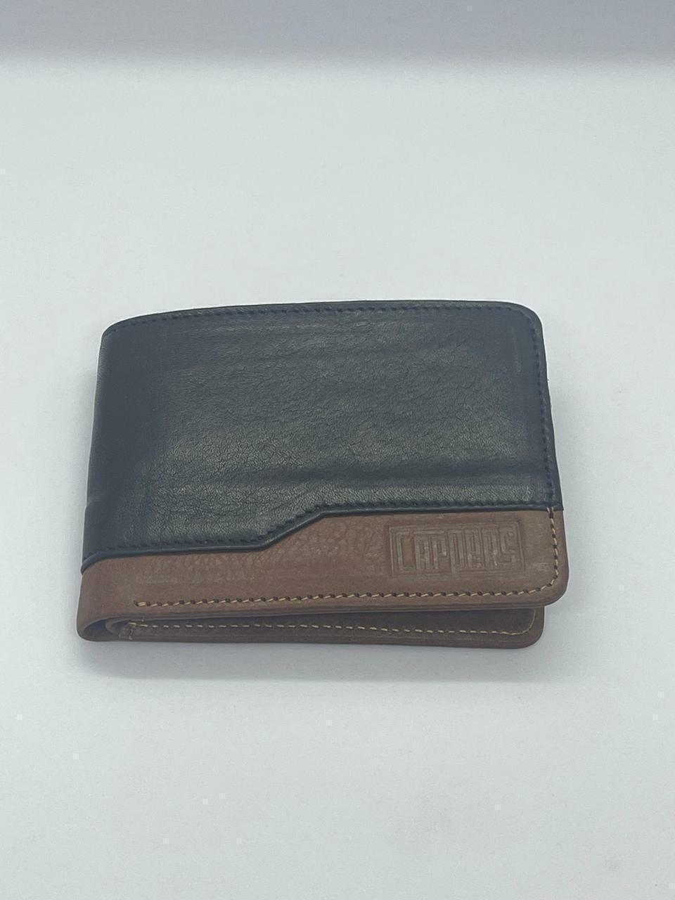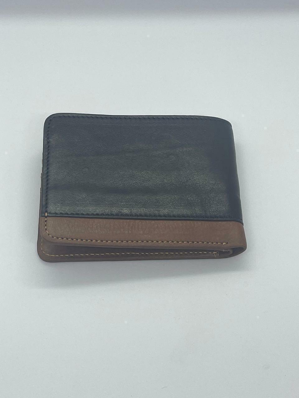 BIlletera clásica 100% cuero vacuno.Doble división para billetes. Capacidad para guardar tarjetas.Combinado marrón y negro.