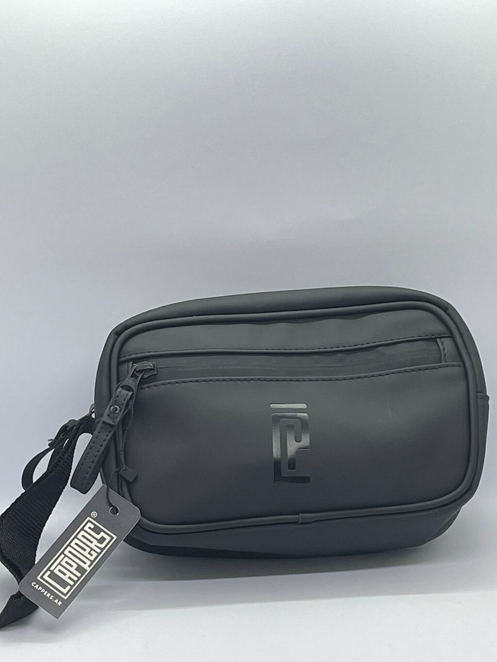 Neceser de ecocuero engomado impermeable. Bolsillo externo y bolsillo superior. Tela antideslizante en la parte dorsal y correa ajustable. Medidas: 22x13x8